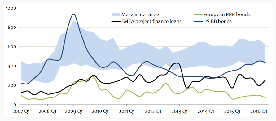 Infrastructure debt has traded at a spread premium to comparable corporates since the aftermath of the financial crisis and global recession of 2007-09. Much of this is due to banking capacity being withdrawn from the infrastructure market because of banks having less capital available to fund long-dated projects. This, in turn, is due to Basel III, which significantly increased the quantity and quality of capital banks must hold, decreased their leverage limits and increased their minimum liquidity.