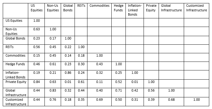 Infrastructure Return Correlations vs Other Asset Classes: Effects on the Efficient Frontier and Portfolio Diversification